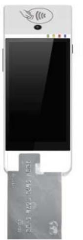 Often referred to as a chip and PIN transaction, The card should be face up with the chip end of the card firmly inserted horizontally into the terminal.