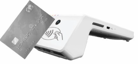 Often referred to as an NFC or tap transaction, the card should be positioned and firmly held within an inch (2.5 mm) of the contactless area on the terminal until the transaction is processed.