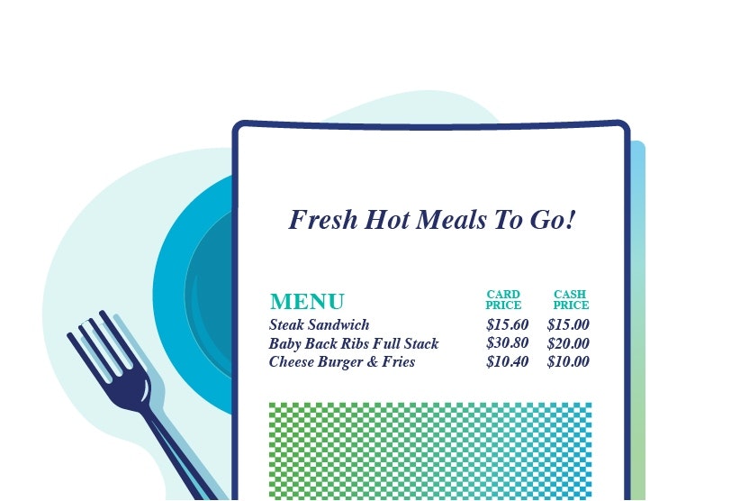 Ensure that all menu items, whether displayed digitally, in print, or on a board, include both cash and card pricing options.