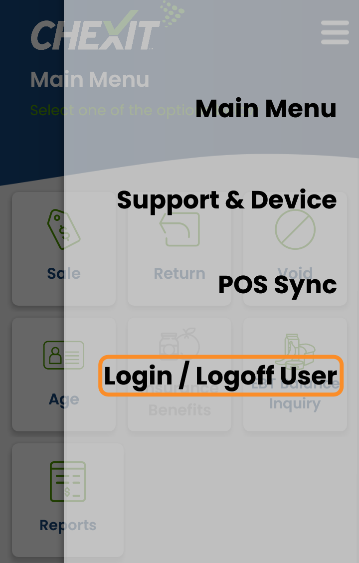 Login/Logoff User will allow the current user to log out of the application so another user may login using their unique PIN.